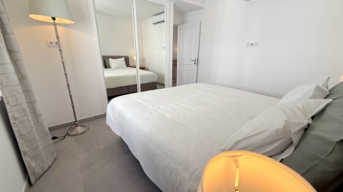 In erste Etage befinden sich zwei Schlafzimmer mit Einbauschränken und jeweils eigener herrlicher Terrasse vor den Schlafzimmern. Eine der Terrassen blickt auf den Garten, von der größeren Terrasse haben Sie einen Blick in Richtung Pool. Das Badezimmer kann als En Suite Bad genutzt werden oder aber die beiden Schlafzimmer teilen sich dieses Bad. Die 50m2 dieser Etage sind perfekt genutzt, um das maximum für alle Räume zu nutzen.
